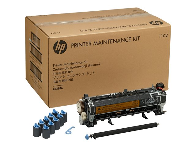 Maintain print quality and prevent paper jams with original HP replacement parts. Maintenance kits include a fuser assembly, transfer roller, tray pick up rollers, and gloves.