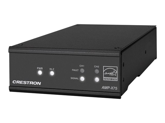 The Crestron AMP-X75 is a high-performance, space-saving, energy-efficient amplifier that's totally configurable, yet simple to use. Whether you need a stereo amplifier that mounts on a wall or under a table, or a high impedance speaker run fed from a rack mounted unit, the AMP-X75 is simple to specify and install in any configuration.