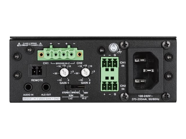 • Configurable for 1 x up to 75 W output for Hi-Z or