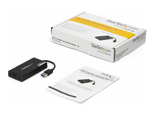 StarTech.com USB 3.0 to HDMI Adapter, 4K 30Hz Ultra HD, DisplayLink Certified, USB Type-A to HDMI Display Adapter Converter for Monitor, External Video & Graphics Card, Mac & Windows - USB to HDMI Adapter (USB32HD4K) - Adapterkabel - TAA-samsvar - USB-type A hann til HDMI hunn - 20 cm - svart - USB-strøm + lyd - for P/N: HDDVIMM3, HDMM12, HDMM15, HDMM1MP, HDMM2MP, HDMM3, HDMM3MP, HDMM50A, HDMM6, HDPMM50