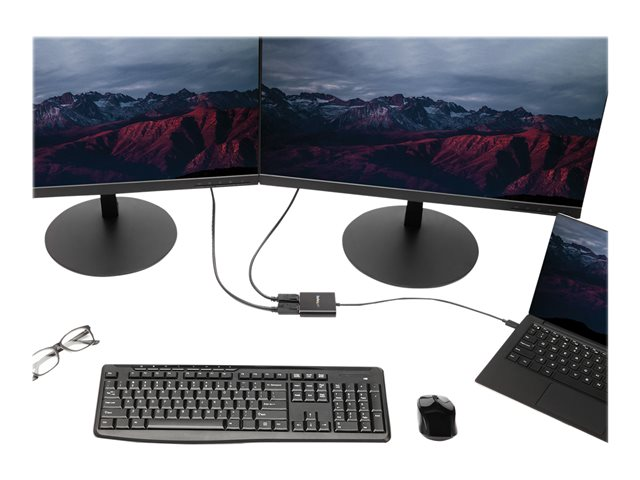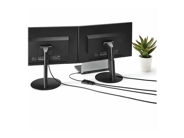 Using this USB-C to dual DisplayPort monitor adapter, you can mirror your display onto additional monitors or stream independent content to each display, which makes it the ideal accessory for travel or hot-desking.