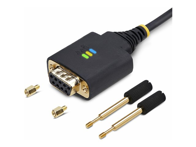 The StarTech.com 3ft (1m) USB to Null Modem Serial Adapter Cable is a connectivity solution designed for demanding applications. With its rugged TPE construction, this cable is built to withstand harsh conditions, ensuring reliability and longevity. It features an FTDI controller and interchangeable DB9 screws/nuts, providing versatile connectivity options for a wide range of devices. The cable also boasts COM retention, which ensures consistent and reliable communication between devices. Additionally, it is equipped with Level-4 ESD protection, offering safeguard against electrostatic discharge and ensuring stable data transmission. Whether you're connecting in a Windows, macOS, ChromeOS, or Linux environment, this adapter cable is engineered to deliver superior performance and protection.