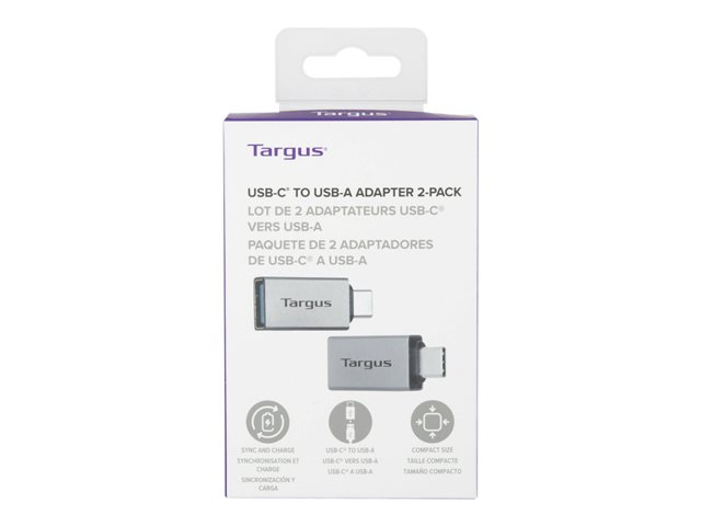 Expand the functionality of your USB-A peripherals on devices with USB-C ports with the Targus USB-C to USB-A adapter. Offered in a two-pack, you'll be able to sync and power up (up to 3.0 A) your workspace essentials like your favorite mouse, keyboard, or a flash drive. Simply connect your accessory to the adapter then connect the adapter to your host device. It supports USB 2.0 (480 Mbps) and USB 3.2 Gen 1 with data transfer rates up to 5 Gbps. This compact adapter is an easy and effective solution for connecting your older cables and flash drives to your newer devices without replacing them.