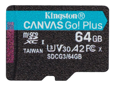 Kingston Canvas Go! Plus - Flashminnekort - 64 GB - A2 / Video Class V30 / UHS-I U3 / Class10 - microSDXC UHS-I SDCG3/64GBSP
