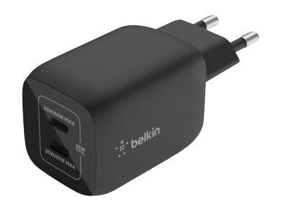 Belkin BoostCharge Pro - Strømadapter - PPS-teknologi - 65 watt - 3.25 A - PD 3.0, Fast Charge - 2 utgangskontakter (USB-C) - svart