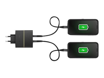 OtterBox Wall Charger - Strømadapter - 50 watt - 3 A - PD 3.0, USB BC 1.2 - 2 utgangskontakter (USB-C) - svart glimt 78-52724