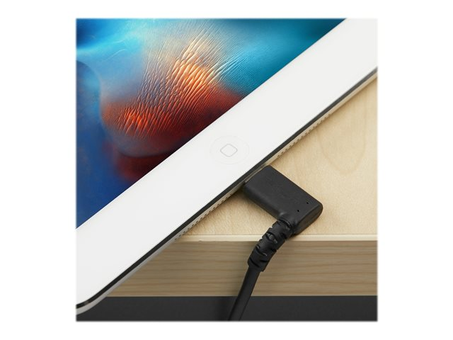 StarTech.com 6ft (2m) Durable USB A to Lightning Cable, Black 90° Right Angled Heavy Duty Rugged Aramid Fiber USB Type A to Lightning Charging/Sync Cord, Apple MFi Certified, iPhone 12 Pro - iPhone 7/8/11/11 Pro - Lightning-kabel - Lightning hann vinklet til USB hann - 2 m - dobbeltisolert - svart