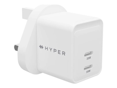 HyperJuice - Strømadapter - GaN - 35 watt - QC 3.0, Power Delivery 3.0 + PPS - 2 utgangskontakter (USB-C) - hvit - Storbritannia