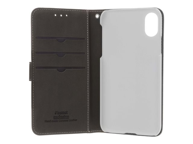 Insmat Exclusive Flip Case - Lommebok for mobiltelefon - ekte skinn, polyuretan, polykarbonat - hvit