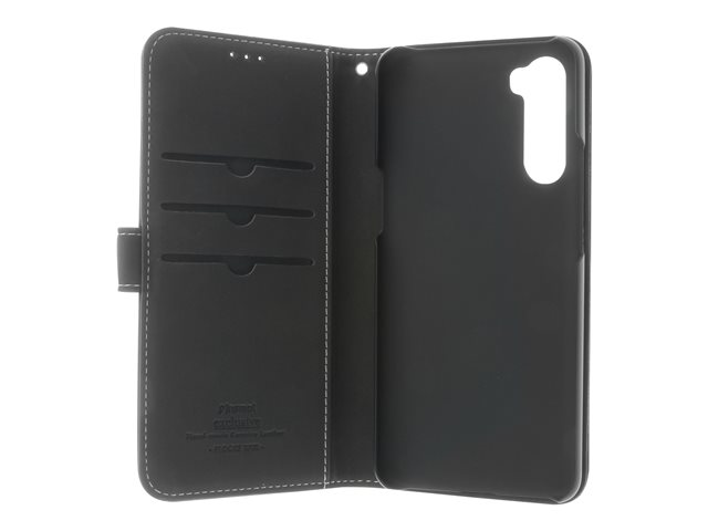 Insmat Exclusive Flip Case - Lommebok for mobiltelefon - ekte skinn, papir, kartong, polykarbonat, aluminiumsfolie - svart - for OnePlus Nord