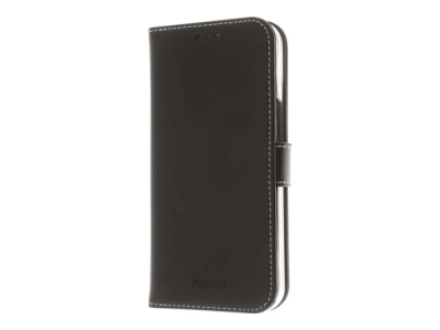 Insmat Exclusive - Lommebok for mobiltelefon - ekte skinn, termoplast-polyuretan (TPU), kartong+papir+aluminiumsfolie, bomullssting - svart - for Apple iPhone 13 mini 650-3000