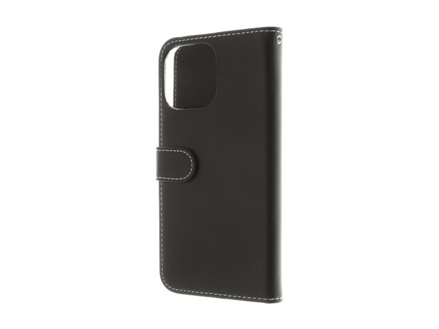 Insmat Exclusive - Lommebok for mobiltelefon - ekte skinn, kartong+papir+aluminiumsfolie, polykarbonat (PC), bomullssting - svart - for Apple iPhone 16 Pro Max 650-3281