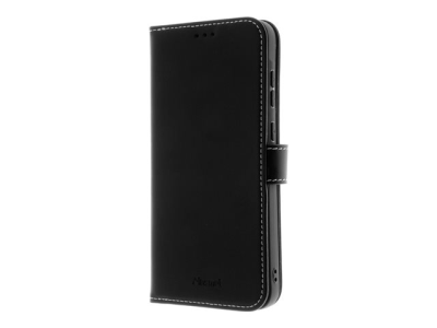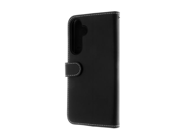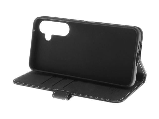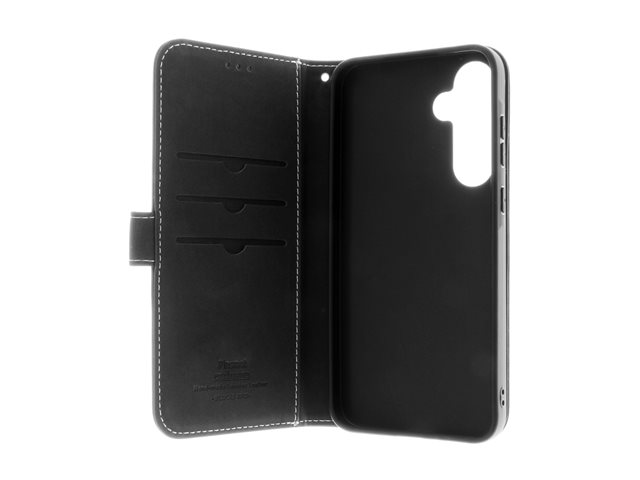Insmat Exclusive - Lommebok for mobiltelefon - ekte skinn, termoplastisk polyuretan (TPU) holder, bomullssting, kartong+papir+aluminiumsfolie - svart - for Samsung Galaxy S24 FE 650-3300