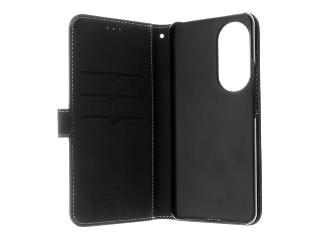 Insmat - Lommebok for mobiltelefon - ekte skinn, bomullssting, PC-bakplate - svart - for Honor 90