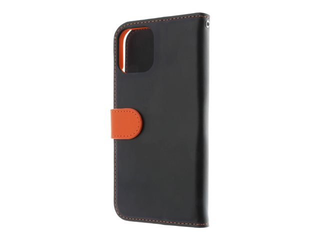 Insmat - Lommebok for mobiltelefon - ekte skinn, papir, polykarbonat, kartong, polyuretanpolstring - svart, oransje - for Apple iPhone 12, 12 Pro