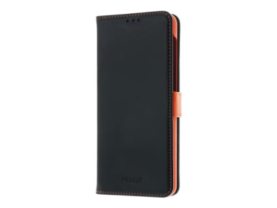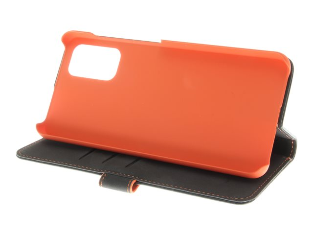 Insmat - Lommebok for mobiltelefon - lær, kartong+papir+aluminiumsfolie - svart, oransje - for Samsung Galaxy A32 5G 650-2970