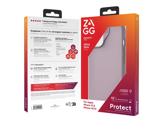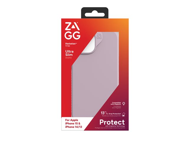 ZAGG Manhattan Snap - Baksidedeksel for mobiltelefon - MagSafe-samsvar - silikon - lavendel - for Apple iPhone 13, 14, 15 702312684