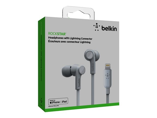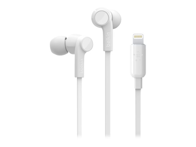 Belkin ROCKSTAR - Ørepropper med mikrofon - i øret - kablet - Lightning - lydisolerende - hvit - for Apple 10.5-inch iPad Pro; iPad mini 4; iPhone 7, 7 Plus, 8, 8 Plus, X, XR, XS, XS Max