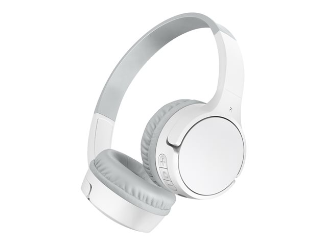 Belkin SoundForm Mini - Hodetelefoner med mikrofon - on-ear - Bluetooth - trådløs, kablet - 3,5 mm jakk - hvit AUD002BTWTV3