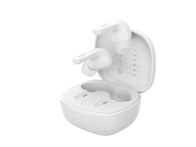 Belkin SoundForm Motion - True wireless-hodetelefoner med mikrofon - i øret - Bluetooth - aktiv støydemping - lydisolerende - hvit