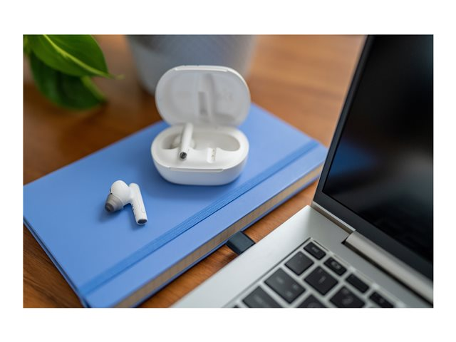 HP Poly Voyager Free 60+ UC M - True wireless-hodetelefoner med mikrofon - i øret - Bluetooth - aktiv støydemping - USB-C via Bluetooth-adapter - sandhvit - Certified for Microsoft Teams