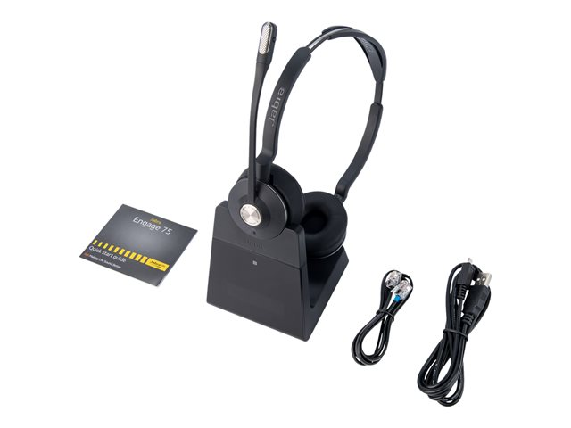 Jabra Engage 75 Stereo - Hodesett - on-ear - DECT / Bluetooth - trådløs - NFC - Certified for Skype for Business 9559-583-111
