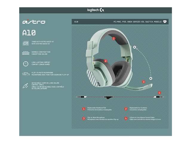 ASTRO Gaming A10 Gen 2 - Hodesett - full størrelse - kablet - 3,5 mm jakk - mynte