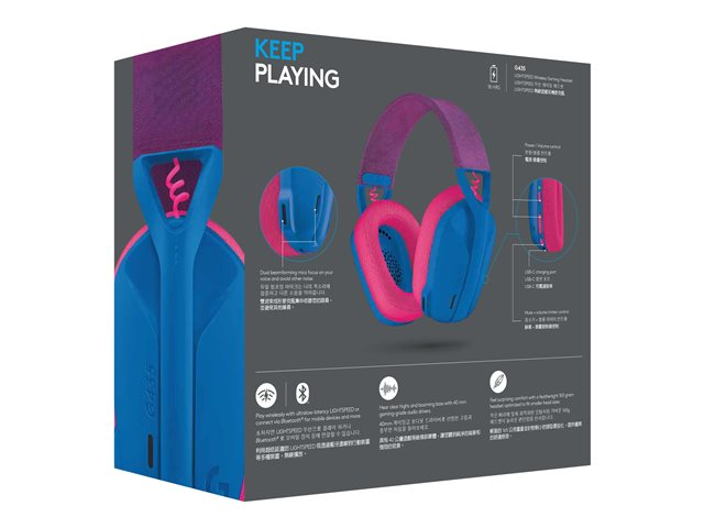 Logitech Lightspeed G435 - Hodesett - full størrelse - Bluetooth / 2,4 GHz radiofrekvens - trådløs - blå - Discord Certified