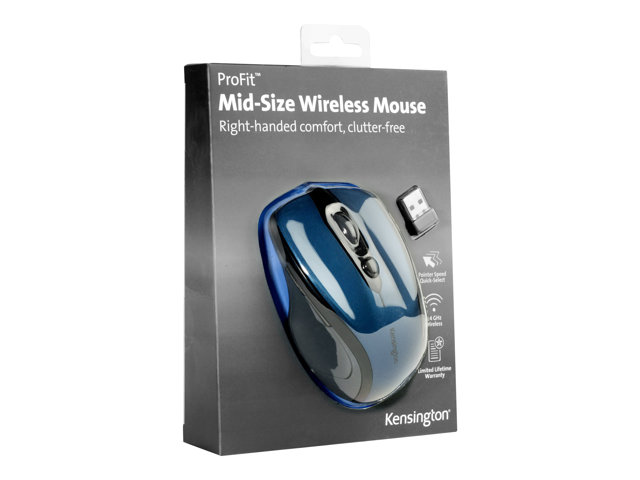 Kensington Pro Fit Mid-Size - Mus - høyrehendt - optisk - trådløs - 2.4 GHz - USB trådløs mottaker - safirblå