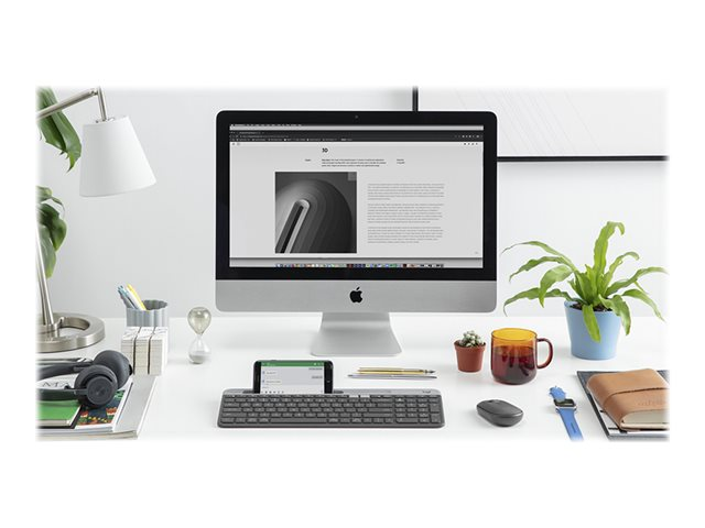 Nå kan du forvandle ethvert område til et moderne multienhetsområde med K580 Slim Multi-Device - et ultratynt tastatur med avansert design, som er perfekt for å notere ned idéer på datamaskinen eller skrive inn tekst på smarttelefonen.