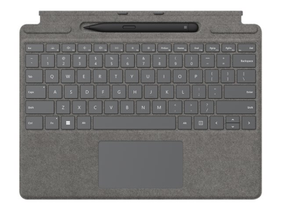 Microsoft Surface Pro Signature Keyboard - Tastatur - med akselerometer, styreplate, lagrings- og ladebakke for Surface Slim Pen 2 - QWERTY - Internasjonal engelsk / kanadisk fransk - platina - kommersiell - med Slim Pen 2 - for Surface Pro 8