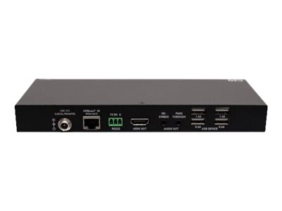 This HDMI HDBaseT Extender is HDCP 2.2 compliant, making sure that the connection between the source and display is secure. One-way analog audio pass through is supported from the transmitter to the receiver. High speed USB 2.0 pass through is supported over HDBaseT up to 230 feet for KVM control of devices such as USB cameras, keyboards, mice, etc. With PoH support, the transmitter sends power to both, the transmitter and the receiver, so no additional power adapter is required, allowing for greater flexibility in installations. Support this HDBaseT system that is already deployed in the field by upgrading firmware through the RS232 port.