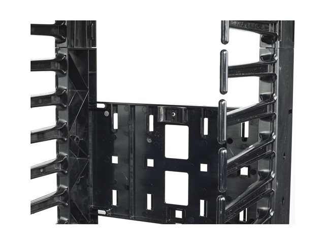 This 12” wide, vertical cable manager for 2 and 4 Post open frame racks ships unassembled for rapid onsite assembly and features full height dual hinging doors and double-sided cable channel with multiple internal cable tie-off locations and smooth plastic fingers at 1U increments for organized patching applications.