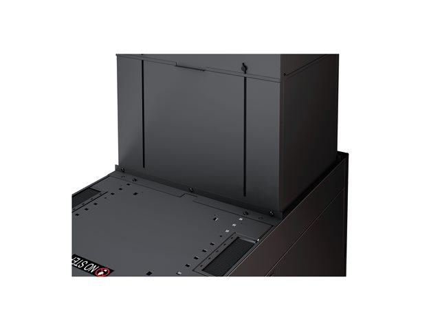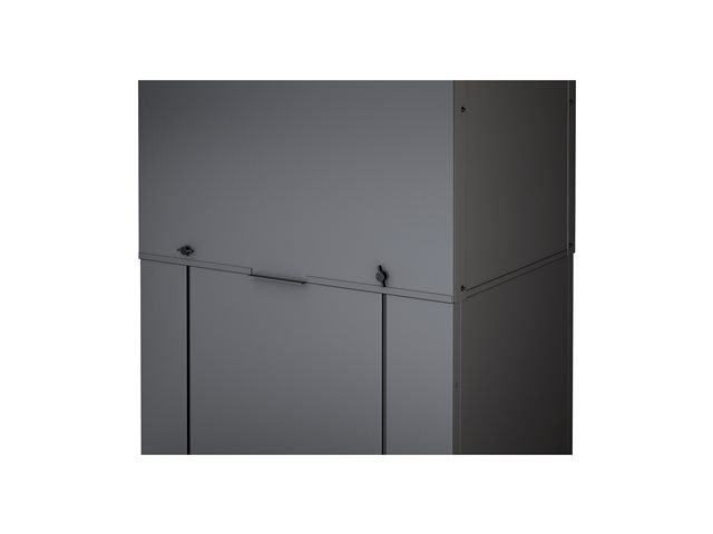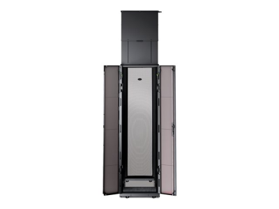 Vertical Exhaust Duct (VED) system for NetShelter SX is a low cost easy to install solution that mounts to the top rear of NetShelter enclosures to capture and return hot exhaust air to room cooling systems.