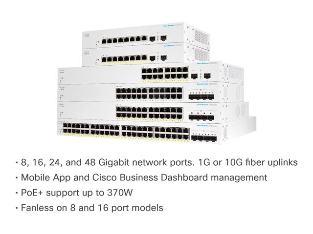 The Cisco Business CBS220-48P-4X switch is simple and affordable smart switch for business-class network. CBS220 series bridge the gap between the affordability of an unmanaged device and the ease-of-use of smart switches. With their intuitive dashboard, mobile app support, and multiple Power over Ethernet (PoE) options, these switches deliver a solid business network.