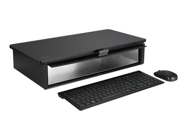 When used as directed, the UVStand Monitor Stand with UVC sanitization compartment safely and easily helps to sanitize keyboards, mice, trackballs, mobile phones and other devices, while promoting healthy posture and optimal comfort. The spacious sanitization compartment accepts most full-sized keyboards and can be used to store desktop items when not sanitizing, freeing up desktop space. The fully-contained UVC LEDs safely sanitize, eliminating up to 99.9% of bacteria and viruses on any exposed surface within 10 minutes, without the use of chemicals, liquids or wipes. Supports monitors up to 18kg (40lbs) and can also be used as a laptop stand, raising the laptop to optimal eye level.