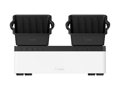 Store and Charge Go with portable trays is the ideal solution to store and charge multiple devices safely and conveniently. A base unit stores up to 10 devices and can be attached securely to a desktop or wall to save space. Removable five-compartment trays add portability for easy transportation. Two lightweight removable trays fit snugly within the base unit.
