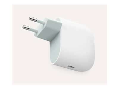The Google power adapter is designed to provide versatile charging for various devices including phones, tablets, headphones, and laptops. With a compact and durable construction made from polycarbonate, this charger ensures efficiency while being eco-friendly, containing 47% recycled materials. Featuring fast charge technology, it allows users to enjoy optimized charging speeds for everyday use.