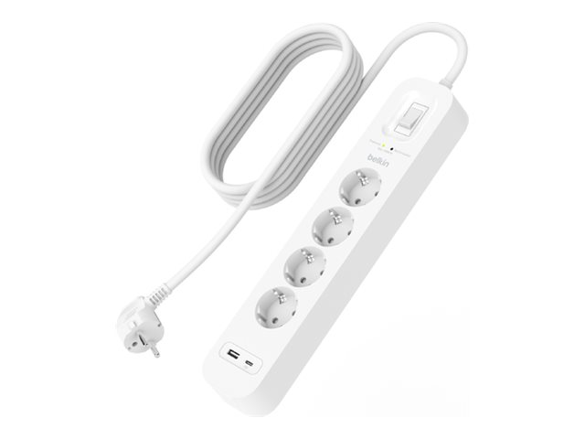 Belkin Connect - Overspenningsavleder - med USB-C- og USB-A-porter - utgangskontakter: 4 - 2 m kabel