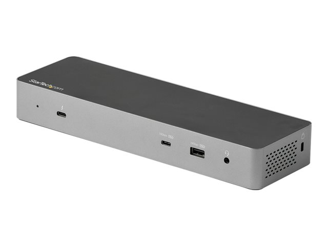 A high-performance Thunderbolt 3 certified docking station with USB Type-C compatibility featuring dual monitor 4K 60 Hz DSC support from either dual or dual HDMI video outputs, 96 W Power Delivery (100 W peak power), 5x USB 3.2 hub with 2x BC 1.2 fast charging ports, Gigabit Ethernet and headset ports.