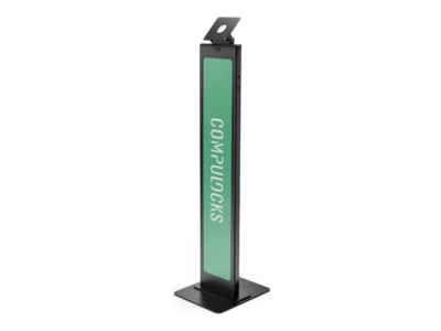 The Compulocks BrandMe stand provides a secure and stylish solution for displaying tablets with recommended sizes up to 24 inches. Made from durable metal, this stand is designed for floor placement and incorporates through-stand cable management for a clean setup. The stand features a 90° tilt adjustment, allowing for optimal viewing angles. Additionally, it is brandable, providing an opportunity to personalize the display for events or promotions. Included with the stand is a Lighting Kit to enhance visibility and showcase content attractively.