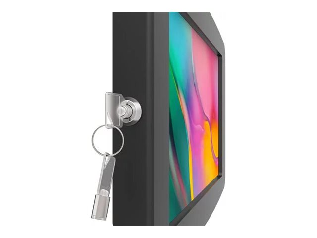 The Space Galaxy Tab Enclosure features rounded edges and open corners for improved ventilation and allows for limited access to buttons and inputs. As with all Galaxy lock and tablet lock devices, the tablet can be continuously charged while in the enclosure and have peripheral cables plugged in while mounted. Mount this enclosure flush to the wall or surface via the standard VESA pattern or pair it with one of stands for additional kiosk experiences. Galaxy Space Enclosure Includes: Lockable High Grade Aluminum Enclosure, VESA Mount Pattern on Back of Enclosure, 2 Enclosure Keys.