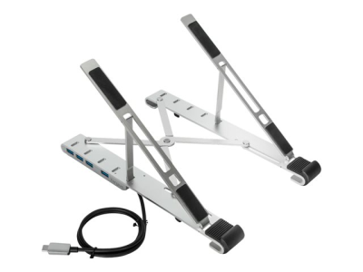 - Robust laptop stand with integrated USB hub, foldable to compact size (25.3 x 6 x 1.83 cm), ideal for modern hybrid workers travelling between locations