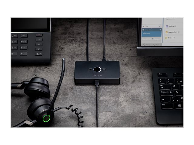The Jabra LINK 950 helps boost productivity by enabling you to use a USB headset, either with just the desk phone or with a desk phone and softphone.