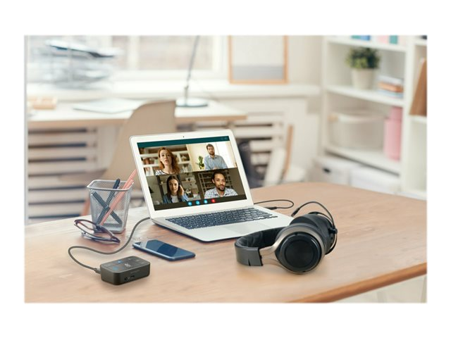 • Use your favorite headset (Bluetooth, USB-C, USB-A, or 3.5mm wired) across different devices and operating systems - including laptops, phones, and tablets