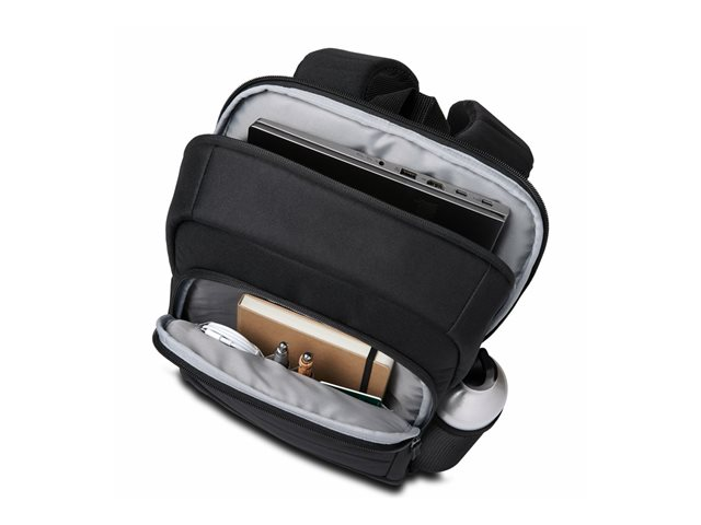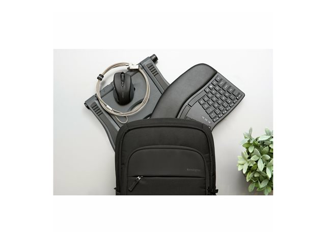 The Kensington laptop backpack is a companion for professionals and students alike. Designed with functionality and comfort in mind, it features padded shoulder straps, a breathable mesh back, and a variety of compartments, including a side bottle pocket. Its durable PET construction ensures your devices and essentials are protected, while the zipper closure keeps your belongings secure. With compatibility for notebooks up to 16 inches, this backpack is versatile enough to meet the demands of your busy lifestyle. Whether you're commuting to work, heading to class, or traveling, the Kensington laptop backpack has you covered.