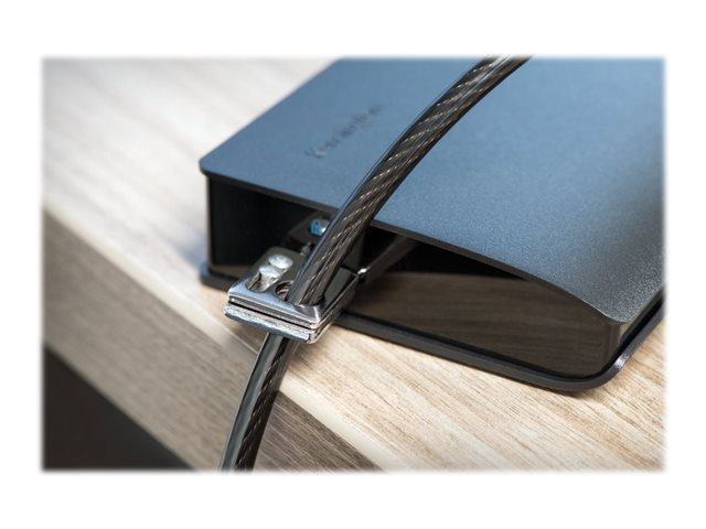• 2.4m (8-foot) carbon steel cable is cut-resistant and anchors to desk, table or any fixed structure