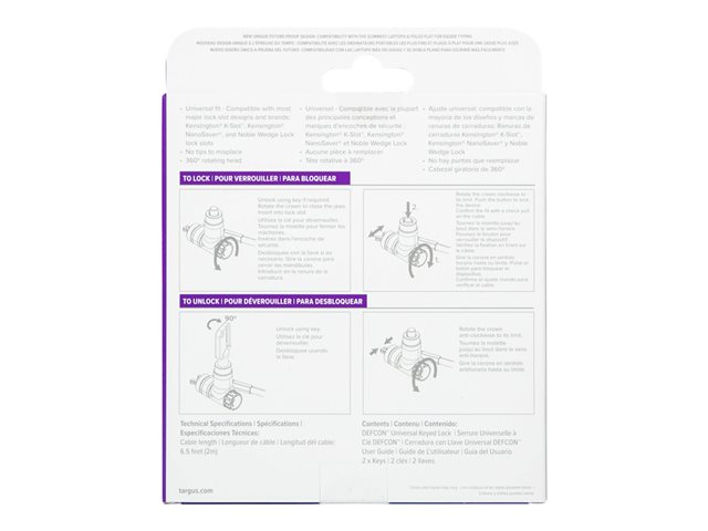 Targus DEFCON Ultimate - Sikkerhetskabellås - universalnøkkel, med justerbart låsehode - sølv - 2 m