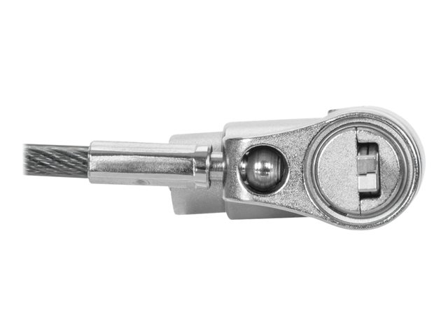 The Targus DEFCON security cable lock offers a solution to protect your technology investments. Designed with versatility and durability in mind, it features a galvanized steel cable, a 360° rotating head for easy application, and a universal keyed lock adaptable to a wide range of devices. Whether you're securing desktops, docking stations, monitors, or notebooks, the DEFCON cable lock provides peace of mind with its master keyed system. Its inclusion of T-Bar, nano, and wedge lock types ensures a secure fit for various devices, making it an essential accessory for safeguarding your valuable technology.